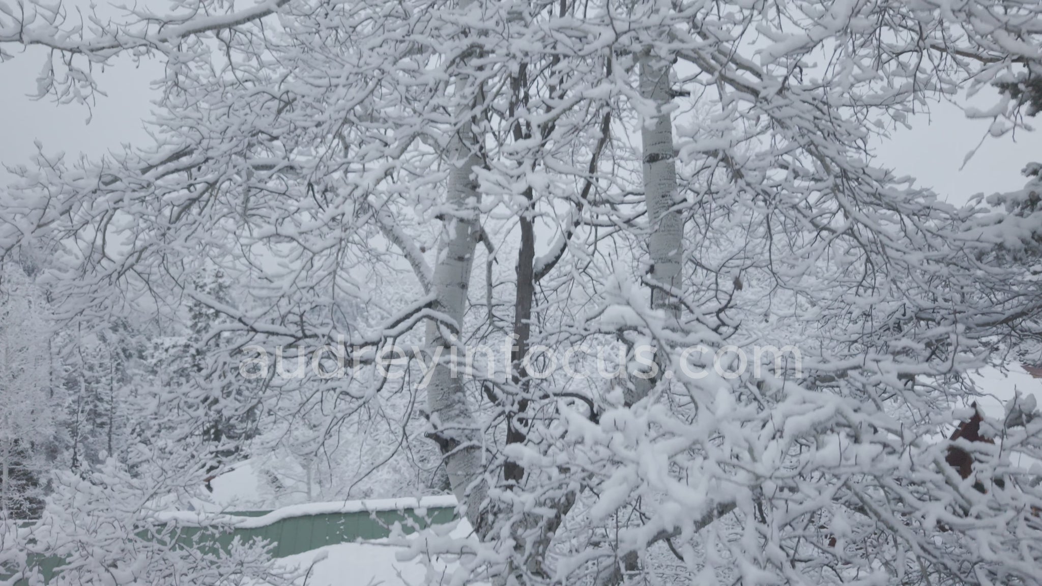 Visuals: Fresh snow on rooftops and trees, soft low-angle sunlight, blue shadows, crisp mountain air