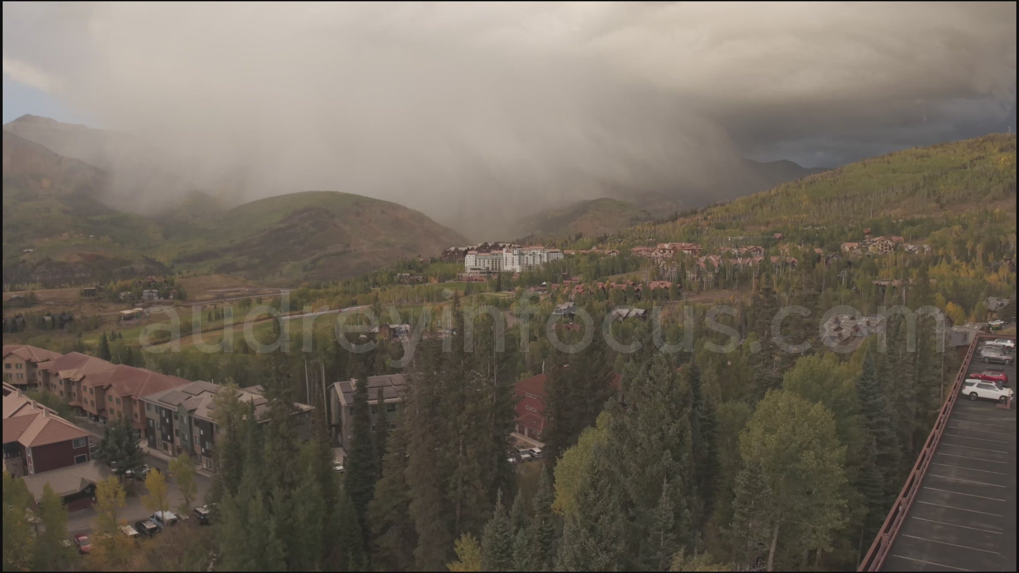 Capture the drama of the San Juan Mountains with this striking B-Roll of a storm front moving over The Peaks Resort in Mountain Village, Colorado. The shot begins with soft golden light across the valley and transitions into the powerful presence of a rain shaft sweeping through the mountains. Perfect for setting a dramatic tone in tourism films, real estate promotions, or documentary projects.